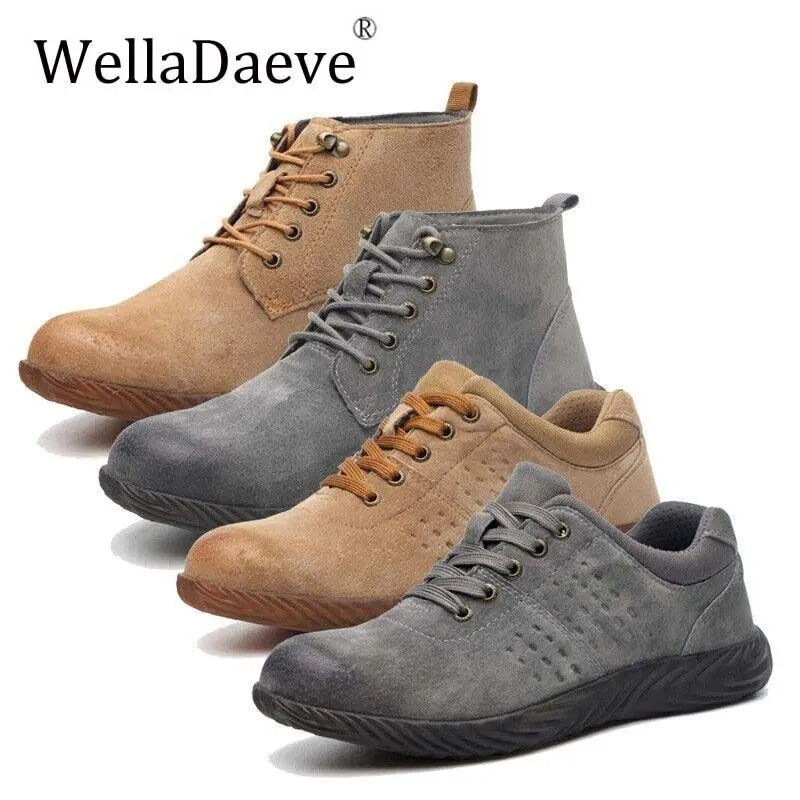 2019 Men's Construction Outdoor High Top Steel Toe Cap Safety Shoes Pig Leather Puncture Proof Ankl