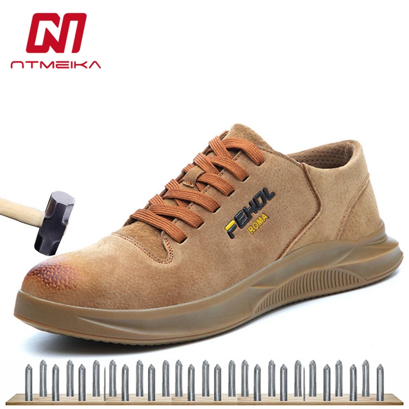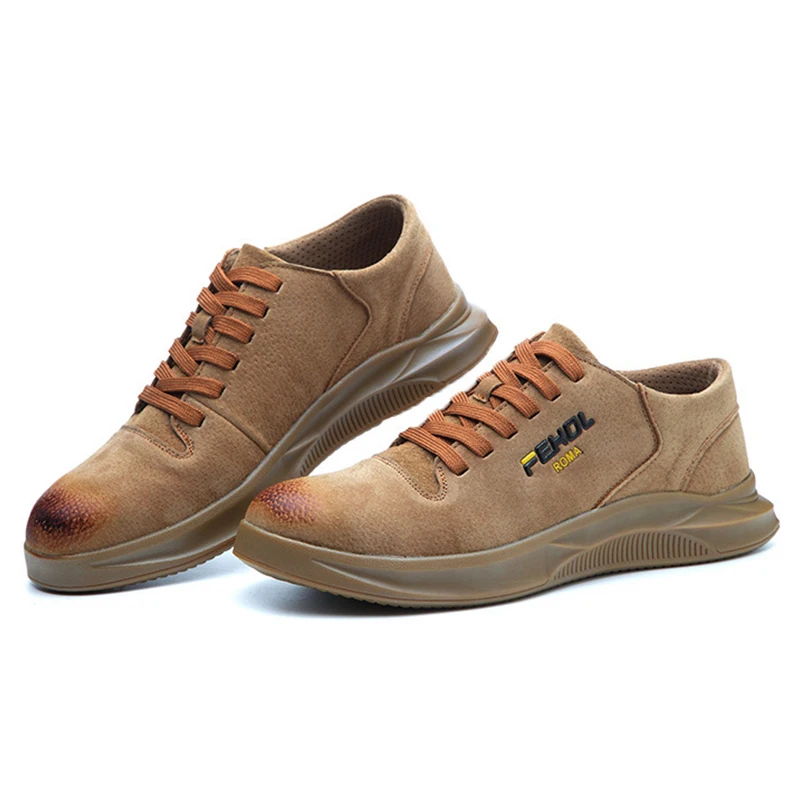 Men's Cow Leather Safety Shoes Steel Toe Work Shoes Breathable Construction Protective Footwear Lar