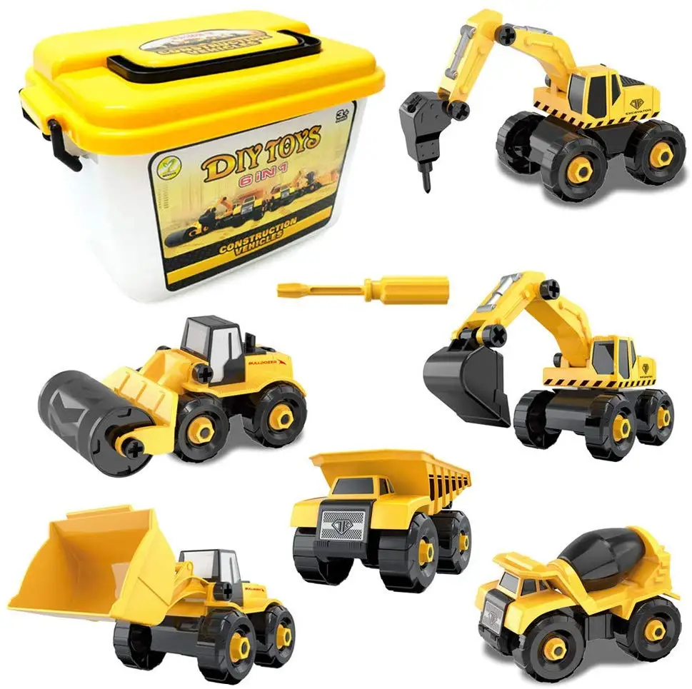 HIGH QUALITY Take Apart Car Sandbox Toy Construction Vehicle 6 Trucks Assembly 6 in 1 Engineering Car with DIY E