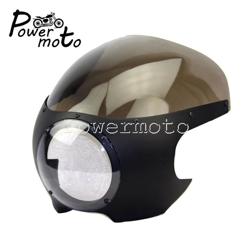 BEST QUALITY White Black Street Bike 5.75" Headlight Fairing Custom Front Light Mask Cowl For Harley Cafe Racer