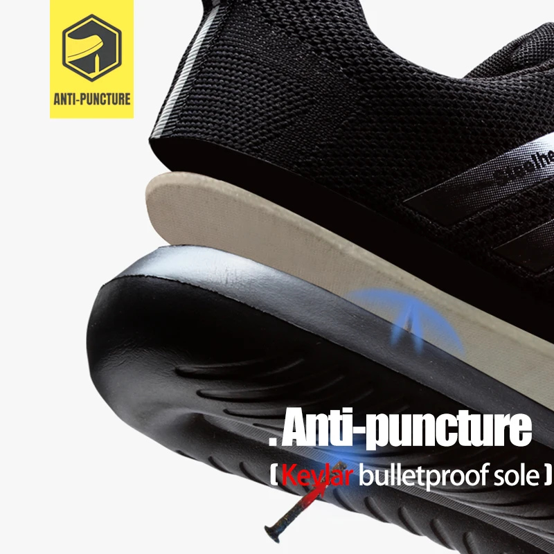 LARNMERN Men's Steel Toe Work Safety Shoes Anti-smashing Anti-puncture Breathable Lightweight Const